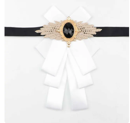- Motýlek Fiží elegantní kravata stuha motýl s broží hladké stuhy bílá